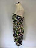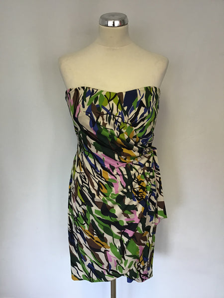 DIANE VON FURSTENBERG MULTI COLOURED PRINT SILK STRAPLESS WRAP DRESS SIZE 10 UK 14