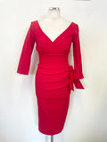 DIVA CATWALK RED V NECK 3/4 SLEEVED BOMBSHELL BODYCON DRESS SIZE M