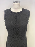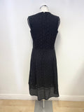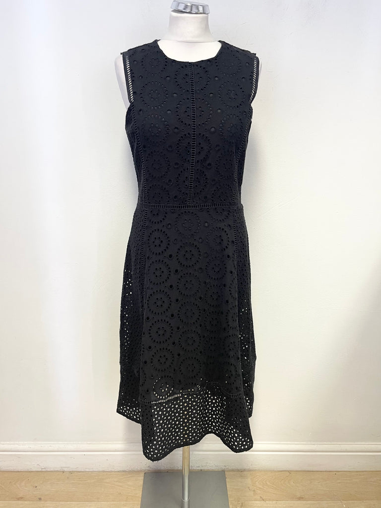 DKNY BLACK BRODERIE ANGLAISE SLEEVELESS A- LINE DRESS SIZE 12
