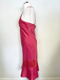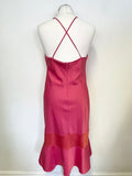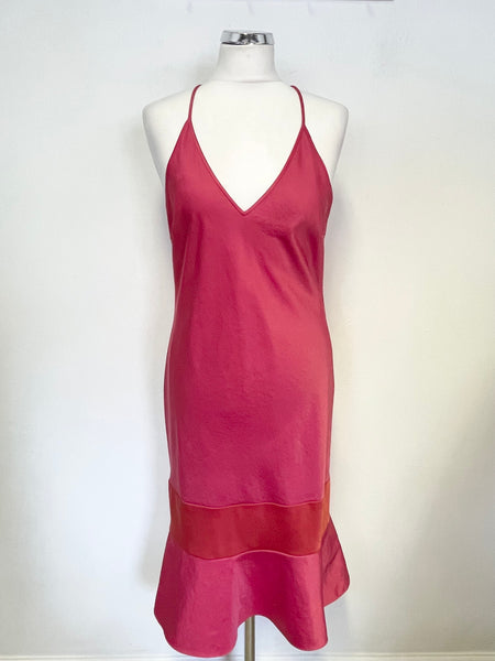 DKNY HOT PINK FINE STRAP CROSS OVER BACK WITH RED FRILL HEM DRESS SIZE 6 UK 10