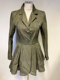 DKNY JEANS KHAKI UNLINED FIT & FLARE BELTED COAT SIZE S