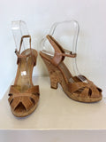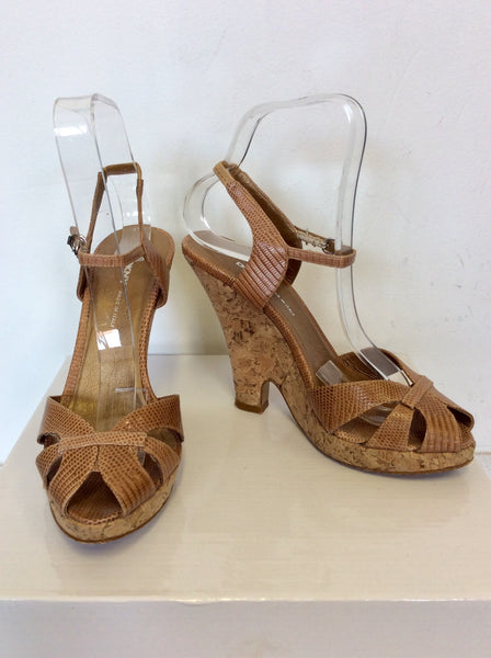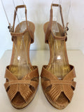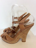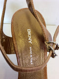 DKNY TAN LEATHER WITH CORK SHAPED WEDGE HEEL SANDALS SIZE 3.5/36
