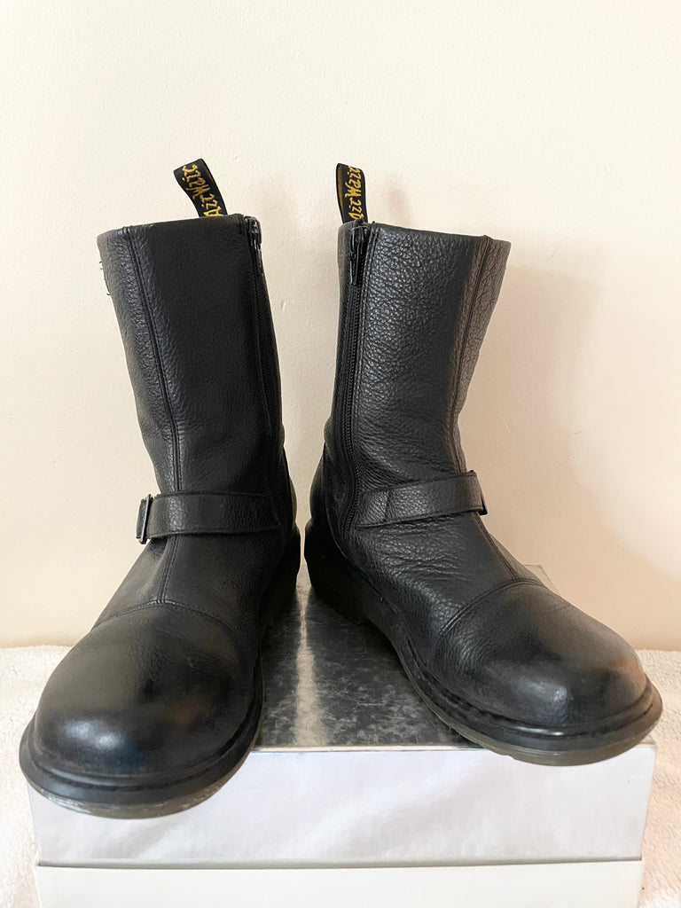 DOC MARTIN KARIN BLACK LEATHER BUCKLE TRIM BIKER BOOTS SIZE 4/37
