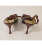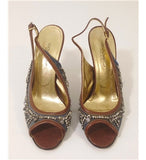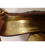 Dolce & Gabbana Tan Leather & Blue Denim Jewel Trim Slingback Heels Size 5.5/38.5