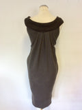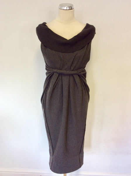 DONNA KARAN DARK GREY MERINO WOOL & SILK RIBBED COLLAR COTTON QUIRKY DRESS SIZE P UK 8