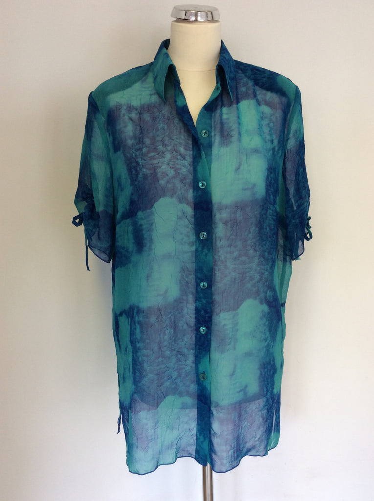 DORIS STREICH GREEN PRINT SHORT SLEEVE BLOUSE SIZE 40 UK 14