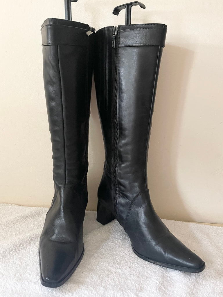 DUO BLACK LEATHER BLOCK HEEL BOOTS SIZE 4/37