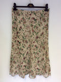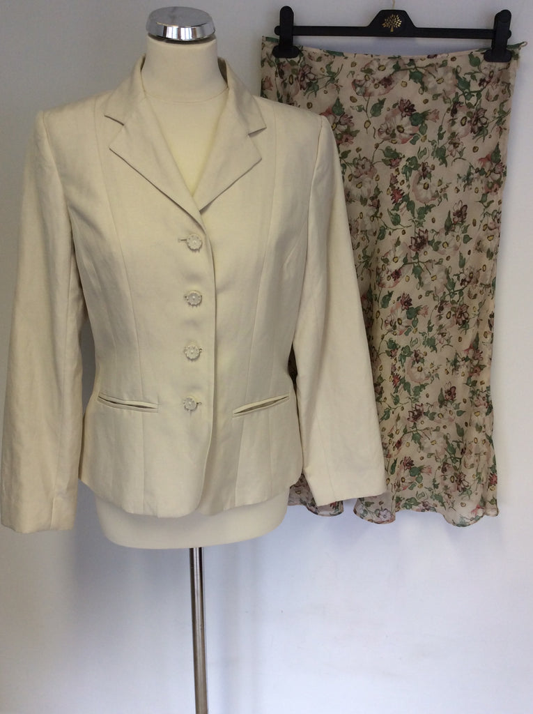 EAST CREAM LINEN & SILK FLORAL LINED JACKET & FLORAL LINED SKIRT SUIT SIZE 12