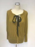 ELIE TAHARI MUSTARD TIE FRONT LONG SLEEVE MERINO WOOL CARDIGAN SIZE L