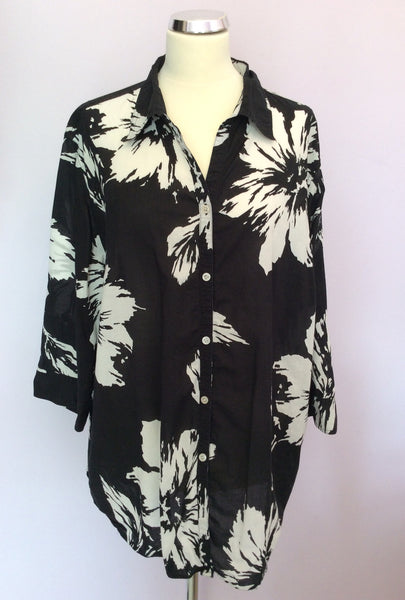 Elizabeth By Liz Claibourne Black & White Floral Print Cotton Shirt Size XXL