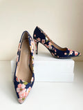 EMILIO LUCA NAVY BLUE & PINK FLORAL SATIN HEELS SIZE 7/40