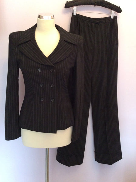 Escada Black Pinstripe Wool Trouser Suit Size 34 UK 6