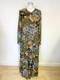 ESPRIT AUTUMN COLOURED SHADES FLORAL PRINT LONG SLEEVED MAXI DRESS SIZE 10