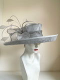 FAILSWORTH SILVER GREY WITH PETAL TRIM WIDE BRIM FORMAL HAT