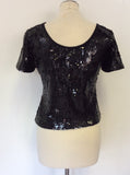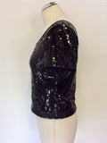 Feminine Grace Black Short Sleeve Sequinned Top Size S