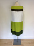 FENN WRIGHT MANSON GREEN, BROWN & WHITE LINEN SHIFT DRESS SIZE 14