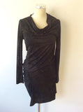 FIRETRAP BROWN PRINT DRAPED STRETCH JERSEY DRESS SIZE M