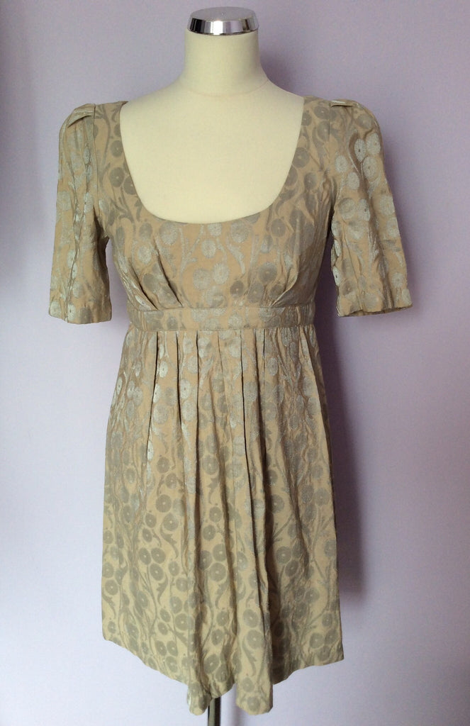 French Connection Beige & Silver Print Dress Size 10