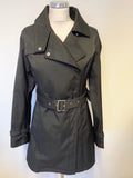 FRENCH CONNECTION BLACK COLLARED MID LENGTH TRENCH COAT/ MAC SIZE S