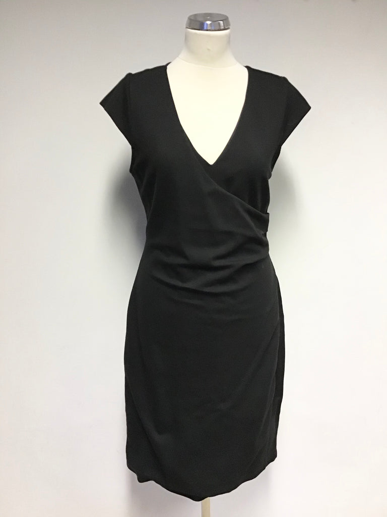 FRENCH CONNECTION BLACK DRAPED FRONT CAP SLEEVE PENCIL DRESS SIZE 16