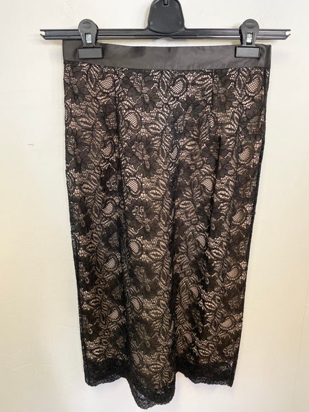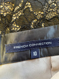FRENCH CONNECTION BLACK & NUDE LINED LACE PENCIL SKIRT SIZE 10