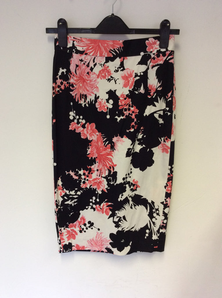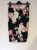 FRENCH CONNECTION BLACK,PINK & WHITE FLORAL PRINT PENCIL SKIRT SIZE 8
