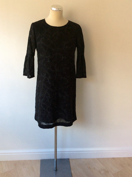 FRENCH CONNECTION BLACK & SILVER EMBROIDERED DRESS SIZE 8