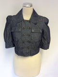 CROP JACKET HAS COLLAR WITH DOUBLE BREASTED BUTTON FASTEN TO FRONT