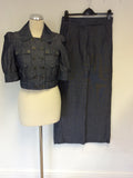 FRENCH CONNECTION BLUE CROP JACKET & WIDE LEG TROUSER SUIT SIZE 8
