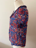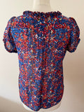 FRENCH CONNECTION BLUE & ORANGE DITSY FLORAL PRINT SHORT SLEEVE TOP SIVE 12