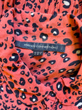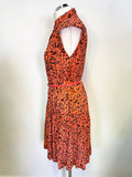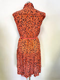 FRENCH CONNECTION CORAL & BLACK PRINT SLEEVELESS BELTED DRESS SIZE 8