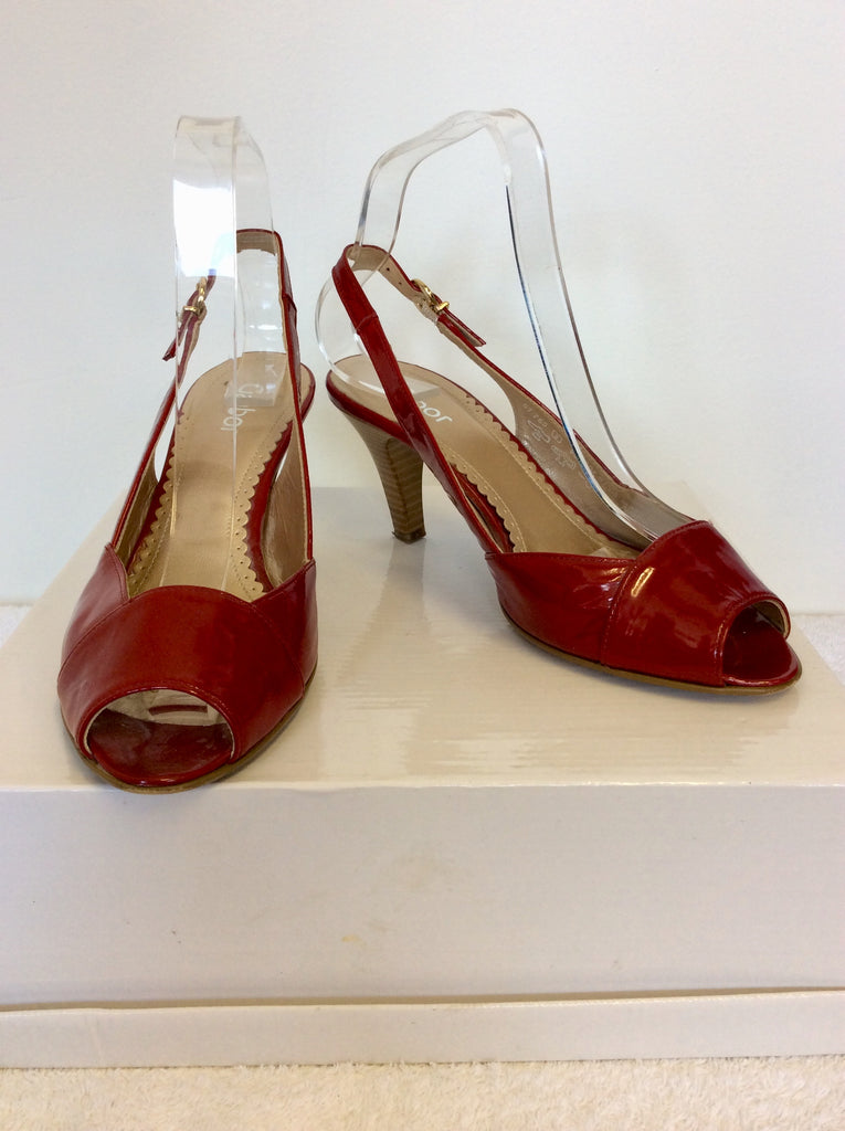 GABOR RED PATENT LEATHER PEEP TOE HEELED SANDALS SIZE 5/38