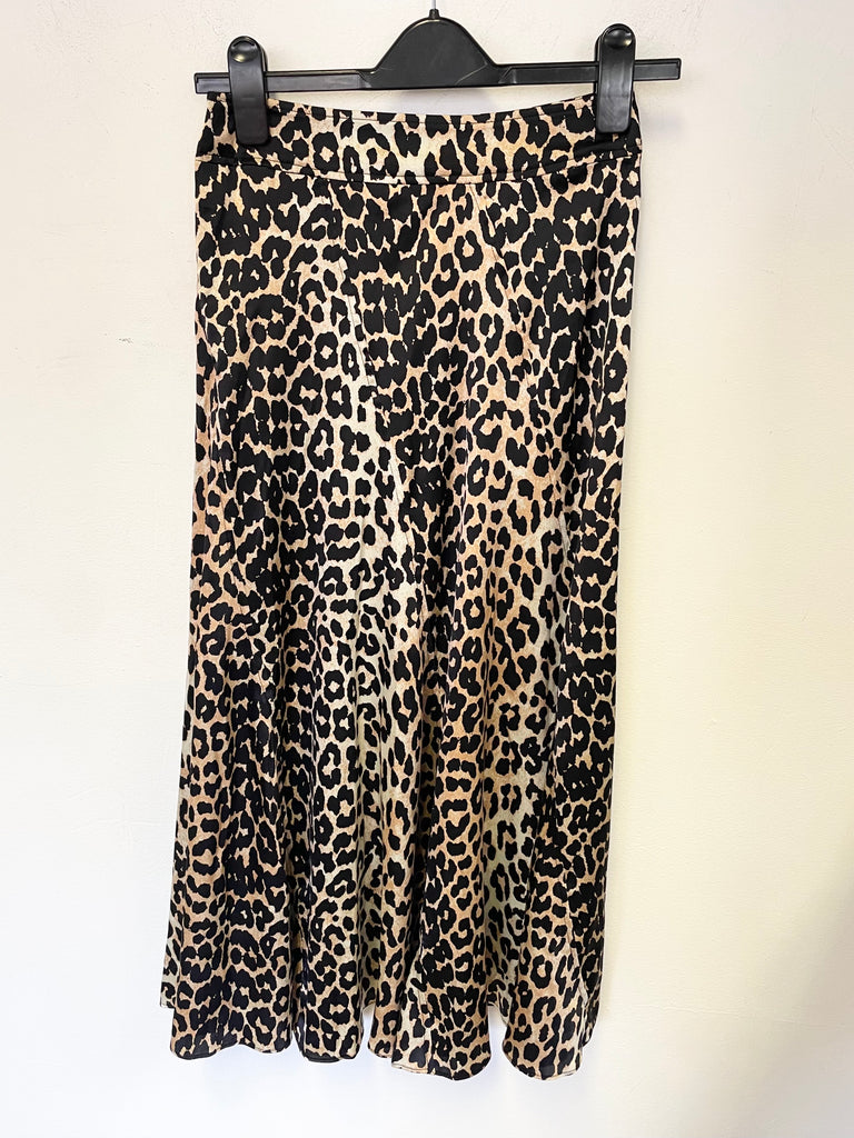 GANNI BLACK & BROWN LEOPARD PRINT SILK A LINE MIDI SKIRT SIZE 36 UK
