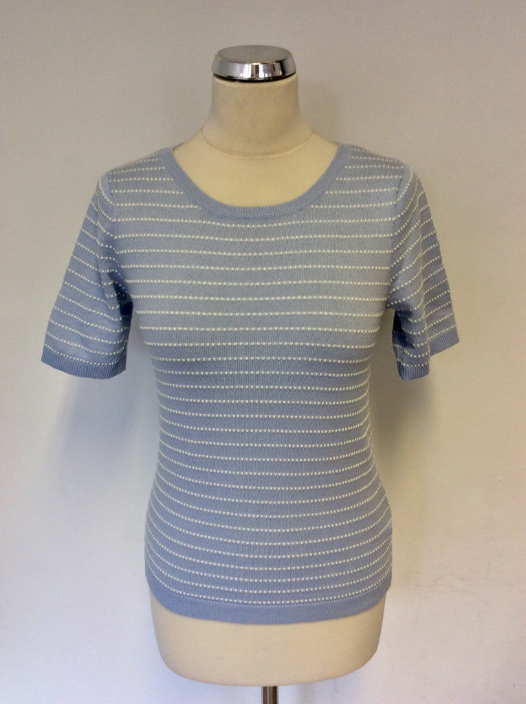 GANT PALE BLUE & WHITE STRIPE SHORT SLEEVE COTTON JUMPER SIZE S