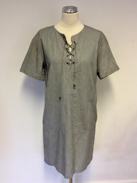 GERARD DAREL DARK BLUE FINE PINSTRIPE COTTON SHIFT DRESS SIZE 38 UK 10