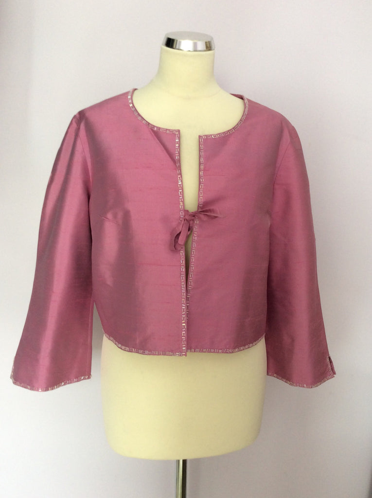 Gerard Deral Pink Silk Beaded Edge Short Bolero Jacket Size 44 UK 16