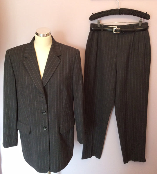 Gerry Weber Dark Grey Pinstripe Wool Blend Trouser Suit Size 16