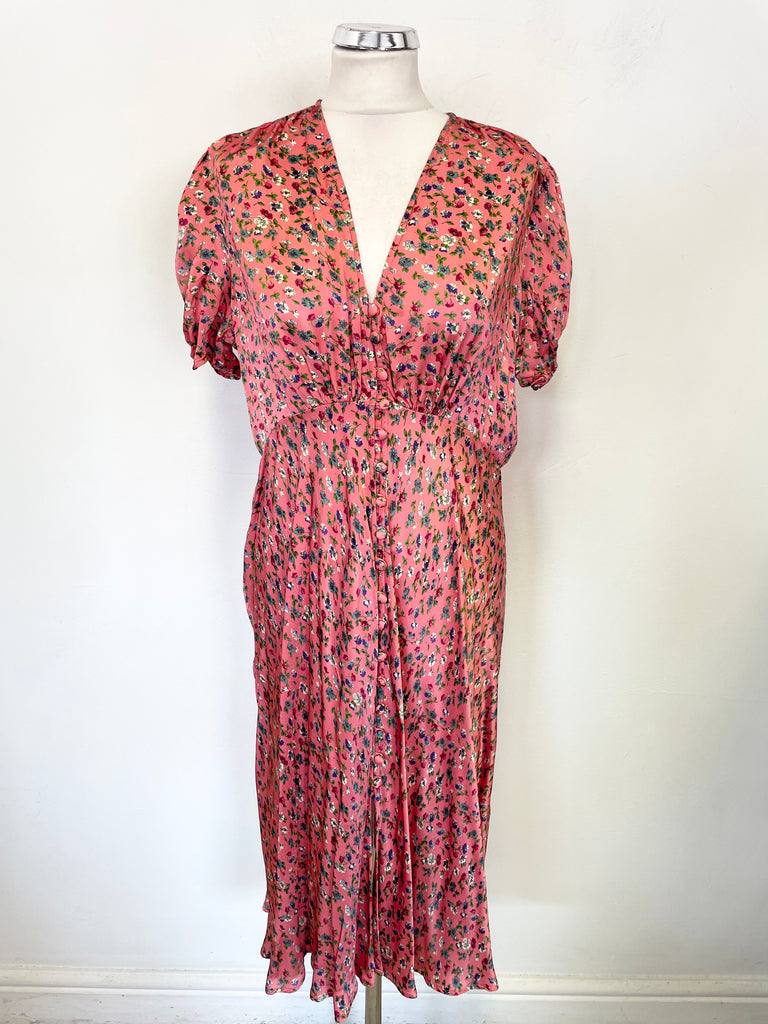 GHOST CORAL PINK DITSY FLORAL PRINT SHORT SLEEVED TEA DRESS SIZE XL