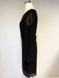 GINA BACCONI BLACK BEAD TRIMMED LONG SLEEVED SHIFT DRESS SIZE 8
