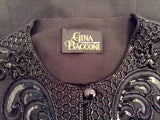 Gina Bacconi Black Beaded & Sequinned Jacket & Skirt Suit Size 14 Fit UK 10/12