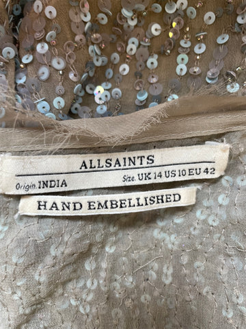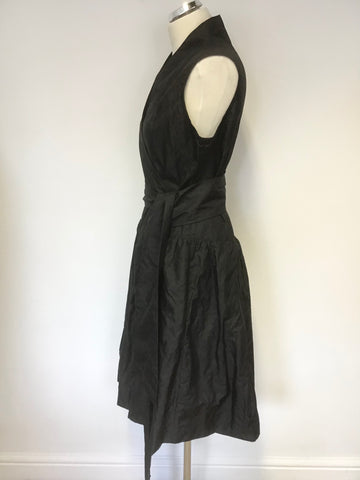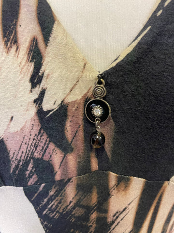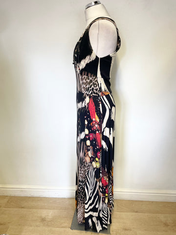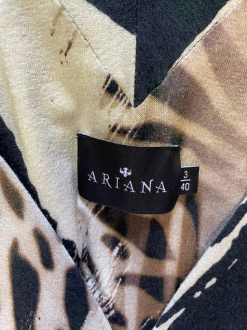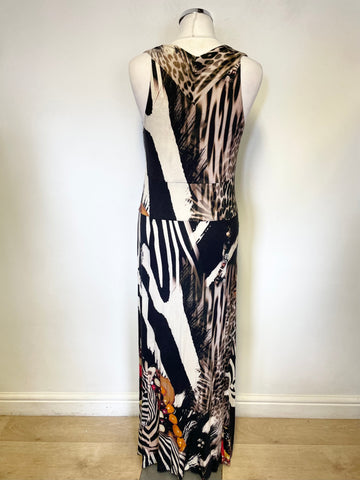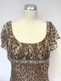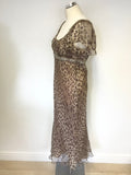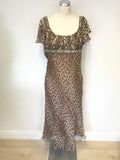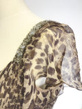 GINA BACCONI BROWN LEOPARD PRINT EMBELLISHED SILK SPECIAL OCCASION DRESS SIZE 14