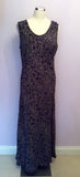 Gina Bacconi Dark Blue Floral Print Long Dress Size 16