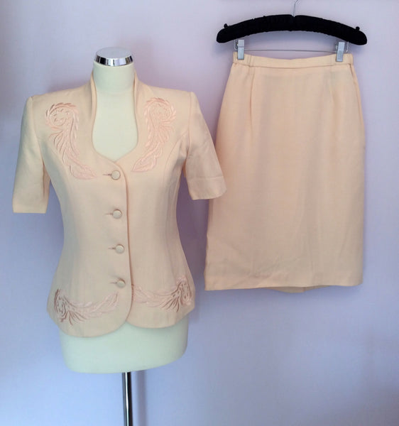 Gina Bacconi Peach Embroidered Skirt Suit Size 10