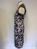 GINA BACCONI SILVER GREY & BLACK PRINT PENCIL DRESS SIZE 12