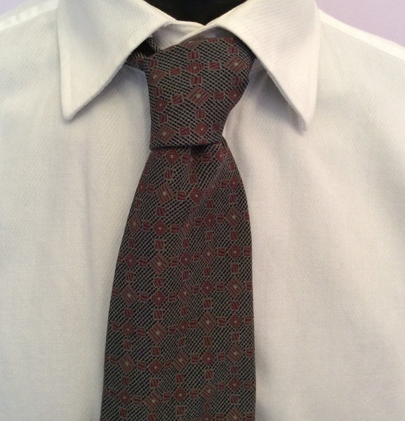 Giorgio Armani Dark Grey & Burgundy Print Silk Tie