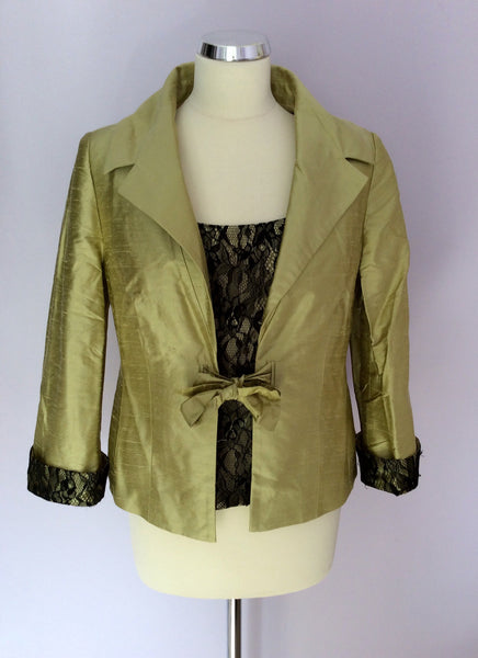 Gold By Michael H, Lime Green & Black Lace Trim Top & Silk Jacket Outfit Size 10