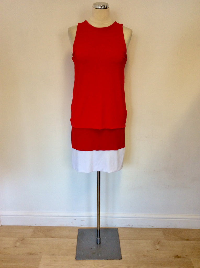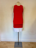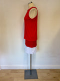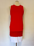 GORGEOUS COUTURE CORAL PINK,RED & WHITE LAYERED TOP DRESS SIZE M