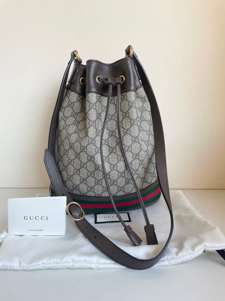 GUCCI OPHIDIA BROWN & BEIGE GG BUCKET BAG