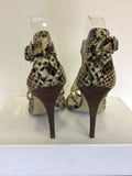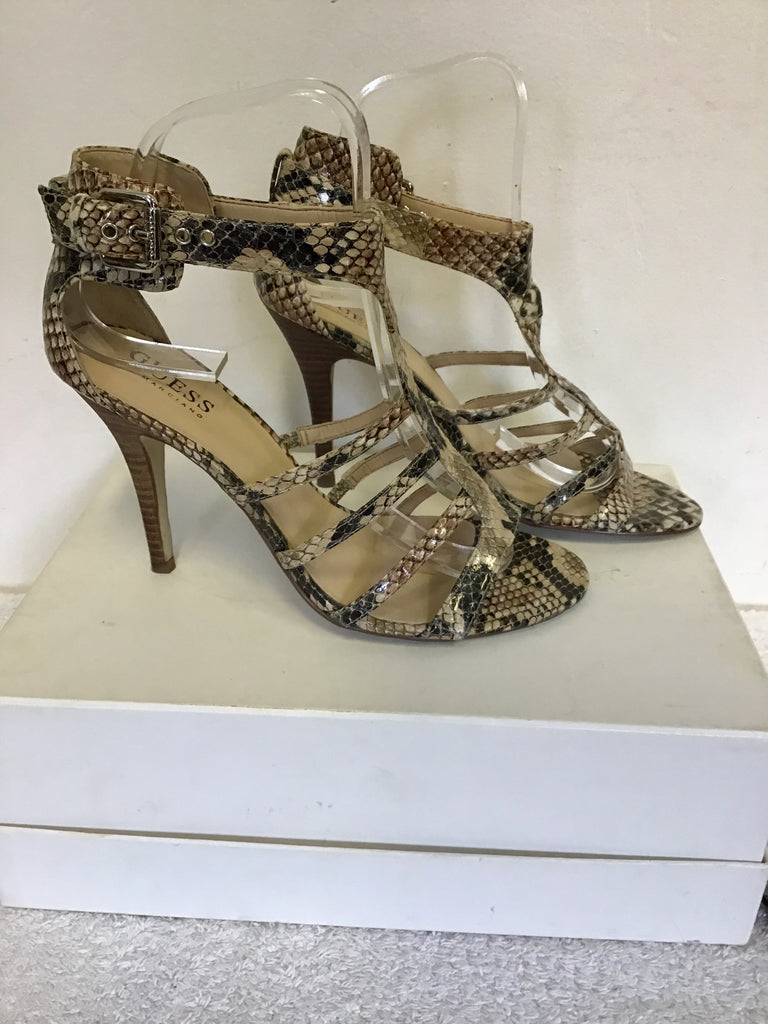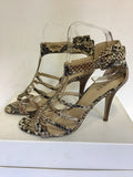 GUESS BY MARCIANO BLACK & BEIGE SNAKESKIN PRINT STRAPPY HEELED SANDALS SIZE 4/37