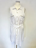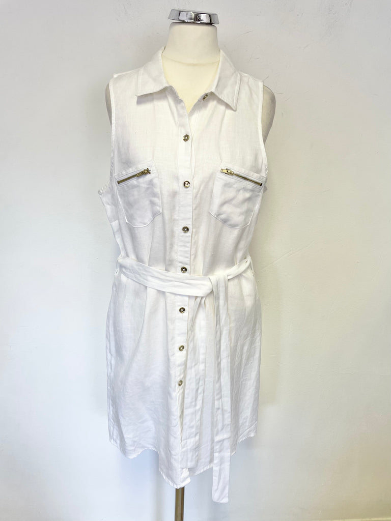 GUESS WHITE LINEN COLLARED SLEEVELESS BELTED SHIRT DRESS SIZE XS
